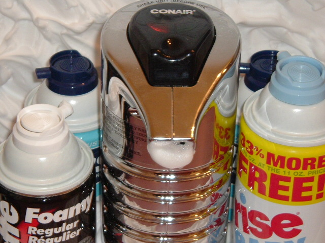Injectors evolved into cartridge razors, and single blades increased to two, three and four. Blades got sharper and lasted longer, approaching ever closer the elusive goal of a "barbershop shave." Electrics aside, a shave consisted of two things: shave cream and blades. Finally, an invention came to sell both: the home lather machine. The multitude of daily shavers welcomed this great, good idea as a godsend, but early machines proved less than ideal. Shick made one that required special shaving cream cartridges which, after the unit went off the market, proved impossible to obtain. One Gillette model won a design award for its modern styling, but the unit proved difficult to clean. Another Gillette design could use any standard shaving cream can -- except Foamy, Gillette's own brand. The worst machine was probably the Eclipse, distributed by Conair, in which the "hot" lather could best be described as lukewarm. But after having made the worst machine, in 2003, they surprisingly made the best. The Conair Hot Lather Machine was the soul of ingenuity, and its engineers had overcome all the problems that had plagued home machines in the past. Previous machines were open on the bottom, and the cans frequently fell out. Conair's machine used a reversible bottom to accomodate 11 oz. or 14oz. cans. "Shake before using" it said on a shaving cream can, but there was no way to shake the lather in the machine, so the lather lost its fizz. Conair's solution? Shake the machine. With the Conair machine, you can use your favorite lather brand. This pleases users; now their favorite brand is hot lather. It also pleases Gillette, Colgate, and Barbasol, whose own products are now enhanced when used with the "value-adding" Conair machine. Likewise, razors. A hot shave is a powerful incentive for a blade razor over an electric. In fact, electric shaver manufacturers were the only ones left out of the equation. Until now. Early wet-dry shavers were cumbersome and innefective. But Panasonic, with its linear shavers, took wet/ dry shaving to the next level, and other companies have added "wet" to their "dry" lines. Electrics have started to include such "wet" features as lotion dispensers on their dry models. Gillette has raised the bar again with its battery-powered Power M3, a mutation of the Mach III with features of an electric wet/ dry shaver. |